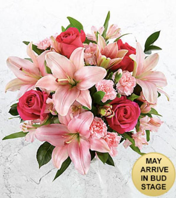 Bouquet is full of blushing color to create a simply fantastic gift. This fresh flower bouquet brings together an array of pale pink blooms with pops of bright fuchsia to give them an eye-catching display they will love. Picked fresh for you, this bouquet is that perfect birthday, thank you, or thinking of you gift. Bouquet includes: pink LA Hybrid Lilies, fuchsia roses, pale pink Peruvian Lilies, pink mini carnations, and lush greens. No Vase.